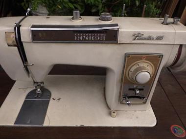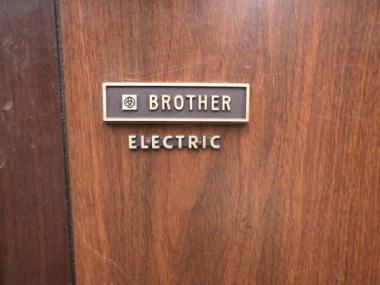 わけあり品。ミシンが傷んでいるため。寸法はミシンをしまった状態で計測したものです。ブラザー製のミシンです。正面から見て右側は引き出しになっています。文京区のお宅で使われていたものです。
