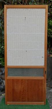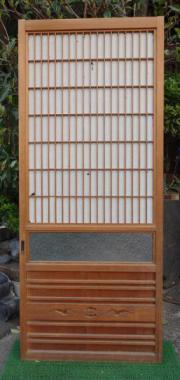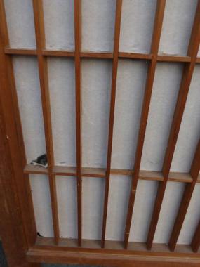 枠、腰、ガラス窓とバランスのとれた割合で構成されています。安定感のを感じさせる意匠です。障子の桟に割れが見られます。