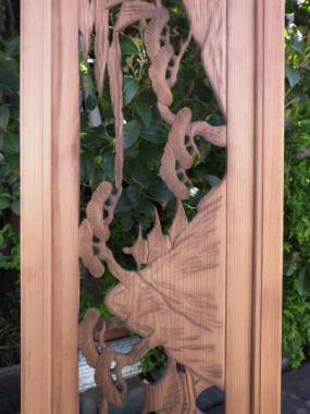 近江八景の模様に彫刻が施されています。湖面の様子がなんとも優美です。