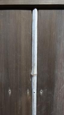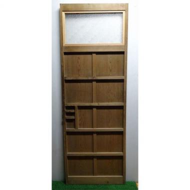 スギ材のトイレ戸です。表面の中央に竹が使われています。 ガラスの枠の部分は、修理してありますので、新材です。 高さ1,725mm幅605mm厚み30mmです。 詳細お問い合わせください。