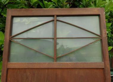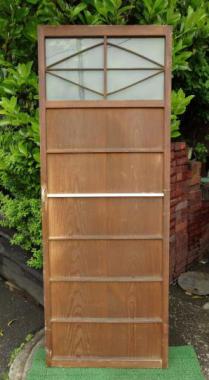 おさえに栗材を使っています。裏面の一部に新材を使用。明かり窓には曇りガラスにシンプルなデザインを施しており、全体を引き締めています。