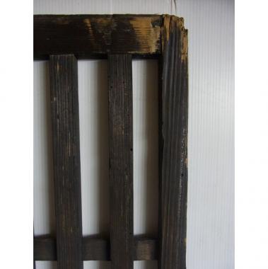 経年変化による木目のおうとつがあり、味わい深い杉の格子戸。高さ1,750mm幅755mm厚み32mmです。 掲載写真のように、一部傷みがあります。 詳細お問い合わせください。