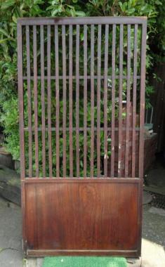 明るめの色味で木目もはっきり出ており、見栄えする格子戸です。腰板に少しよれている個所があります。