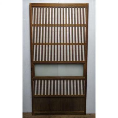 スギ材の大阪格子戸です。在庫の内、1枚は中央部分のガラスがありません。 全ての在庫に、掲載写真のような腰の割れが見られます。 高さ1,735mm幅930mm厚み32mmです。 詳細お問い合わせください。