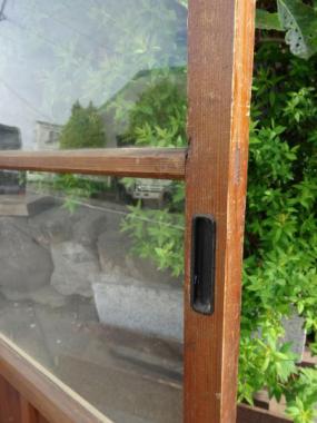 オーソドックスなデザインのガラス戸です。オイルステインのようなものが塗られているため、つるつるした触り心地です。