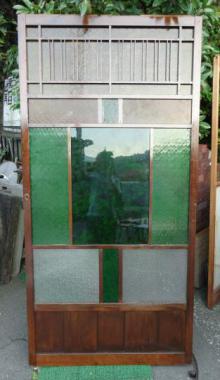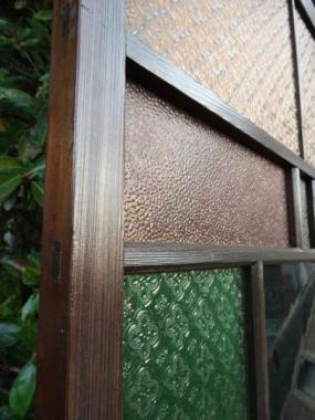 様々な形のおうとつがあり、かつ色付きのガラスが使われており、なかなかこだわりの強い一品。オレンジや緑のガラスの面積が大きく、色のついた光を思い切り存分に味わえそうな、そんな贅沢な戸です。