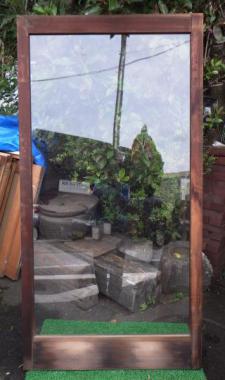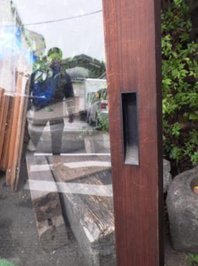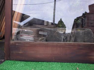 一枚ガラスが使われているため、外の景色を存分に楽しむことができます。千葉県市川市にある大正時代に建てられた古民家で使われていたガラス戸です。材質はヒノキ、上框は75(+15)mm、下框165mm、横框55mmです。