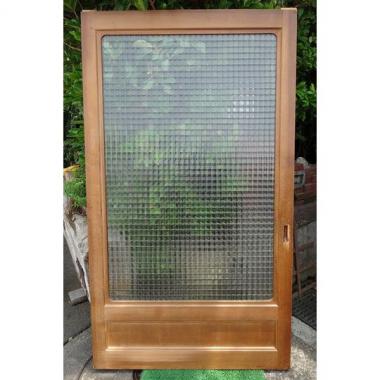 大きな一枚ガラスが印象的な建具です。重厚感のあるガラスのスクエア模様が素敵です。 高さ1,720mm幅990mm厚み30mmです。 詳細お問い合わせください。