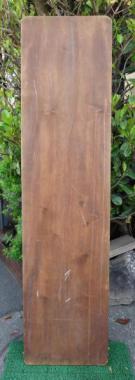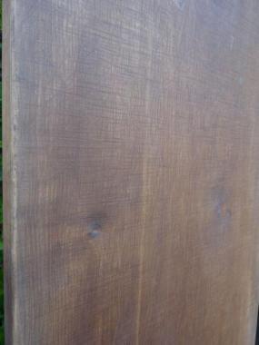 同じ方向に短く線が入っています。何かの作業台として使われていた板かもしれません。ただの古材ではなく、人の手によるダメージが加わっており一風変わった板です。
