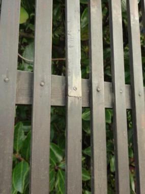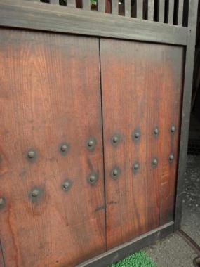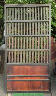 わけあり品。格子に割れが見られ、腰には隙間ができてしまっています。優しい色味にくすんだ腰板に古い鋲が打ち込まれており、いいアクセントになっています。裏面は色が濃く、また違った表情。