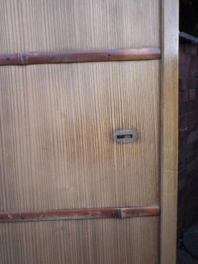 わけあり品。取っ手がないため。煤竹の横桟が上品で良い表情を出しています。