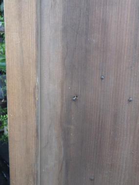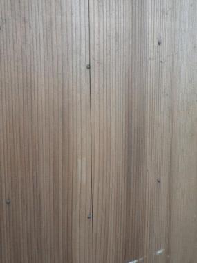 わけあり品。桟が二重になっており、堅牢なデザインです。表面に割れがあったり、釘が取れてしまっている個所があるため、お値引きしております。