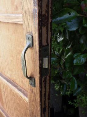 わけあり品。裏面が紙素材のため、お値引きしております。板とともに取っ手の部分も経年変化しており、良い味わいがでています。