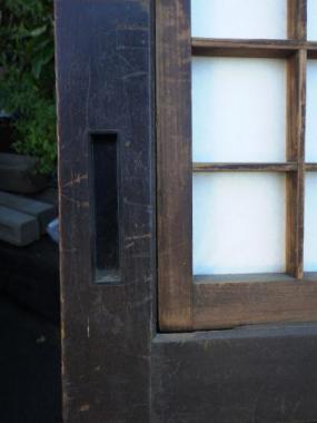 わけあり品。腰板が割れてしまっているため、接着剤で留める必要があります。障子の格子は升格子になっています。
