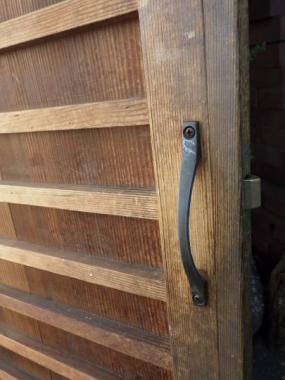 釘のさびが模様のようになっていてとてもユニークです。桟の部分には模様がないのでメリハリが生まれ、デザインされた感じすらしてしまう面白い戸です。