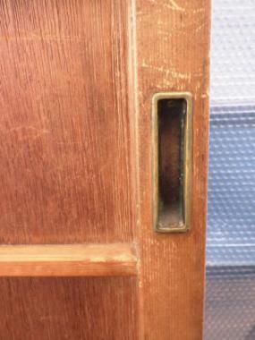 東京の恵比寿で使われていたものです。面取り加工や金具のデザインなどどこか上品で居心地の良い雰囲気の舞良戸です。