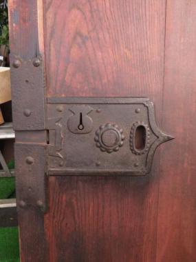 鍵のところの金具の模様が控えめながらも魅力的な表情です。自然な赤みのある茶色で親しみやすい雰囲気があります。