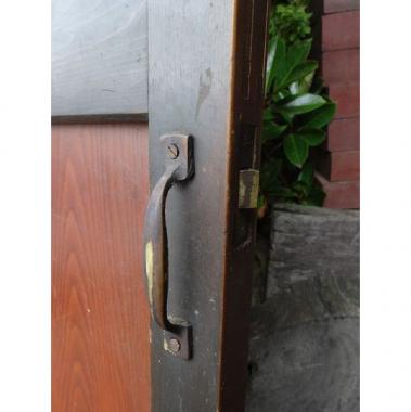 明るめの茶色と黒帯のコントラストに味わいがあります。材質は杉になります。 高さ1,690mm幅764mm厚み33mmです。 詳細お問い合わせください。