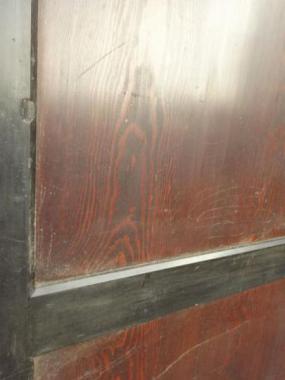 黒と茶の二色使いの帯戸です。一部高さを調整した跡が見られます。