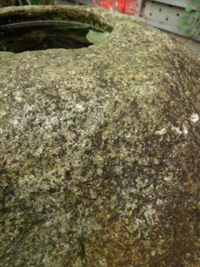 向きによって凛とした表情を見せたかと思うと、足が出たような妙な面もあり、なんだか可笑しくなる憎めないかたちをしています。水を溜める所は直径200×深さ100です。