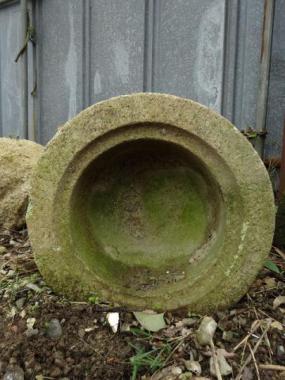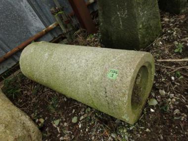 円柱状のつくばいで、かがまずに水を受けることができます。格別に主張の強い形ではないので、古びた場所でなくとも汎用性は比較的高いのではないでしょうか。水が溜まる所は、直径300×深さ120です。