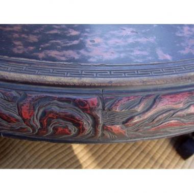 オリエンタルな彫刻が美しいちゃぶ台です。直径が1,030mm、高さが330mmです。 足にも彫刻が施されてあり、とりはずし可能です。 詳細お問い合わせください。