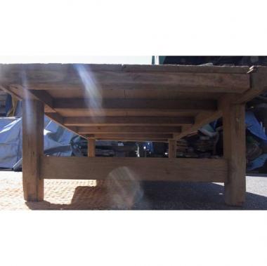 埼玉県のいわつき、酒蔵で使われていた縁台です。高さ430mm縦817mm横1,650mmです。詳細お問い合わせください。天板部分に目立った傷みはありませんが、丸い穴が二箇所空いています。丸穴の用途だったのか不明ですが、ひろーい天板の中にぽちぽちと、なんだか愛らしいアクセントにもなりそうです。青いペンキがちょっとついてます。詳細、お問い合わせ下さい。