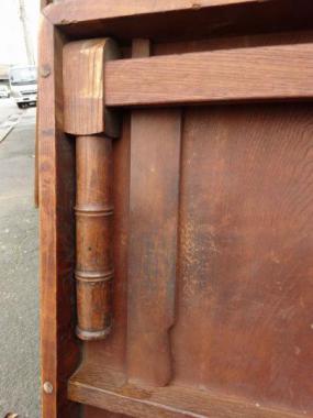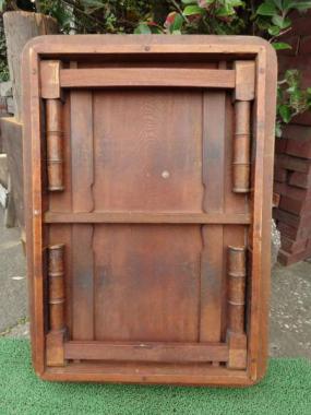 天板が585×825で、高さが300です。使い勝手の良いサイズ感。足のところには竹のような加工があり、良い味になっています。天板の風合いも新品にはない味わいです。