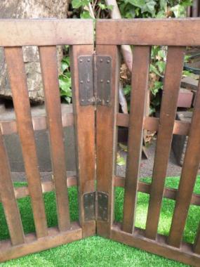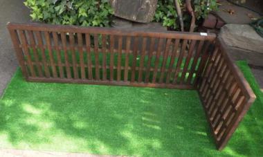 商店などの古い建物を見学した時に時たま見かける帳場格子です。帳簿をつけたりお金を出し入れしていたところに置いていた背の低い衝立です。畳や床板の上に置くととても良い風情を味わえます。インテリアとしてもおすすめです。寸法はL字の状態で計測したものです。