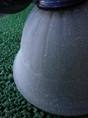 上部が螺旋状にツイストしているデザインです。傘の部分は特殊なガラスになっており表面に粒々のディテール、内側は曇りガラス風になっています。