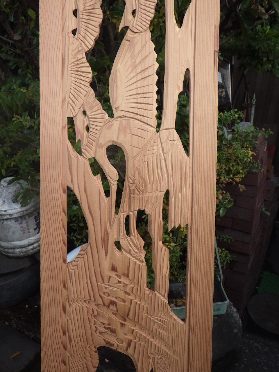 鶴と松の彫刻欄間
