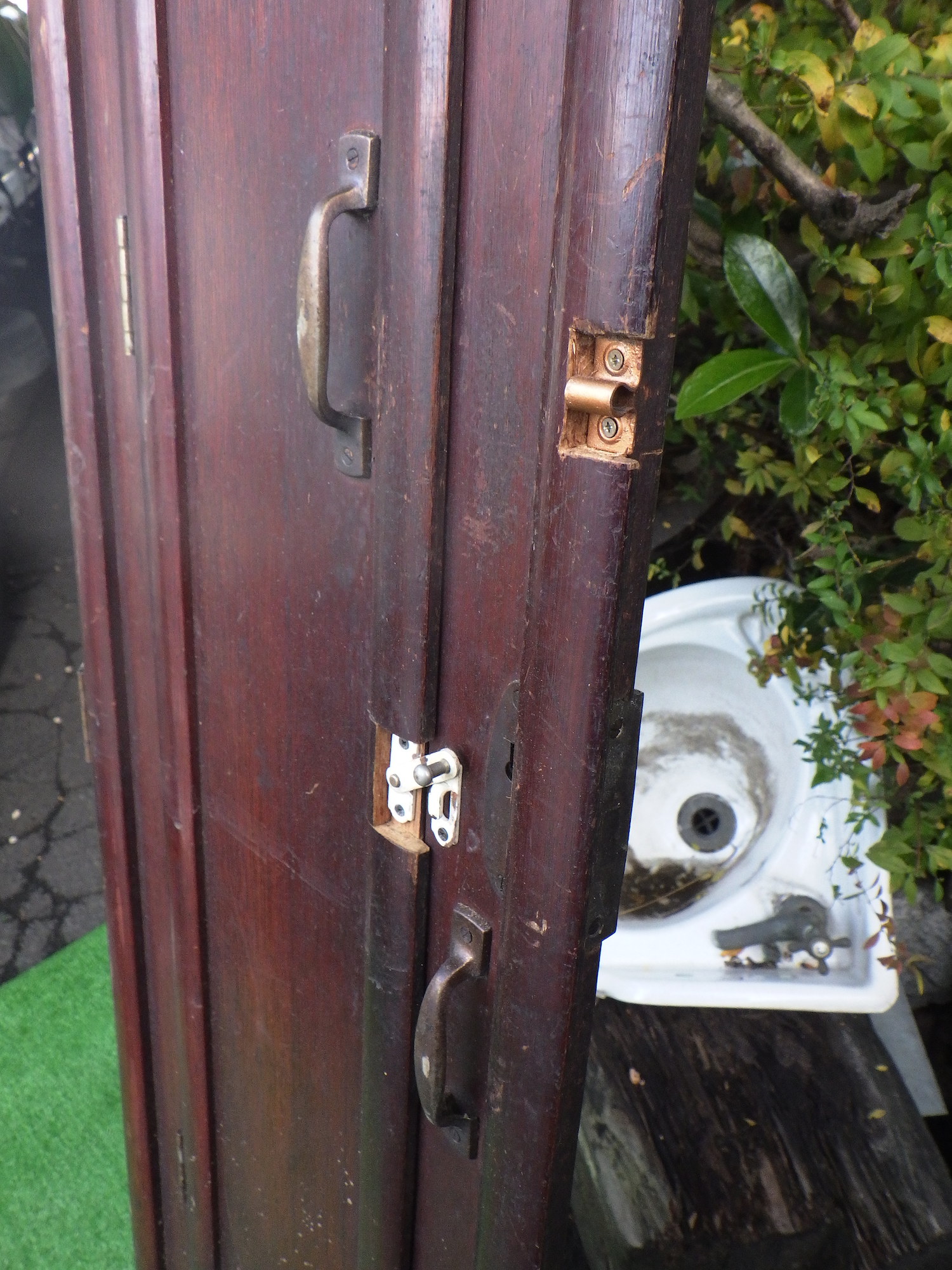 大小どちらのドアにも取っ手が付いています。板の厚みは20mmで内側の小さいドアの枠の部分が30mmあります。