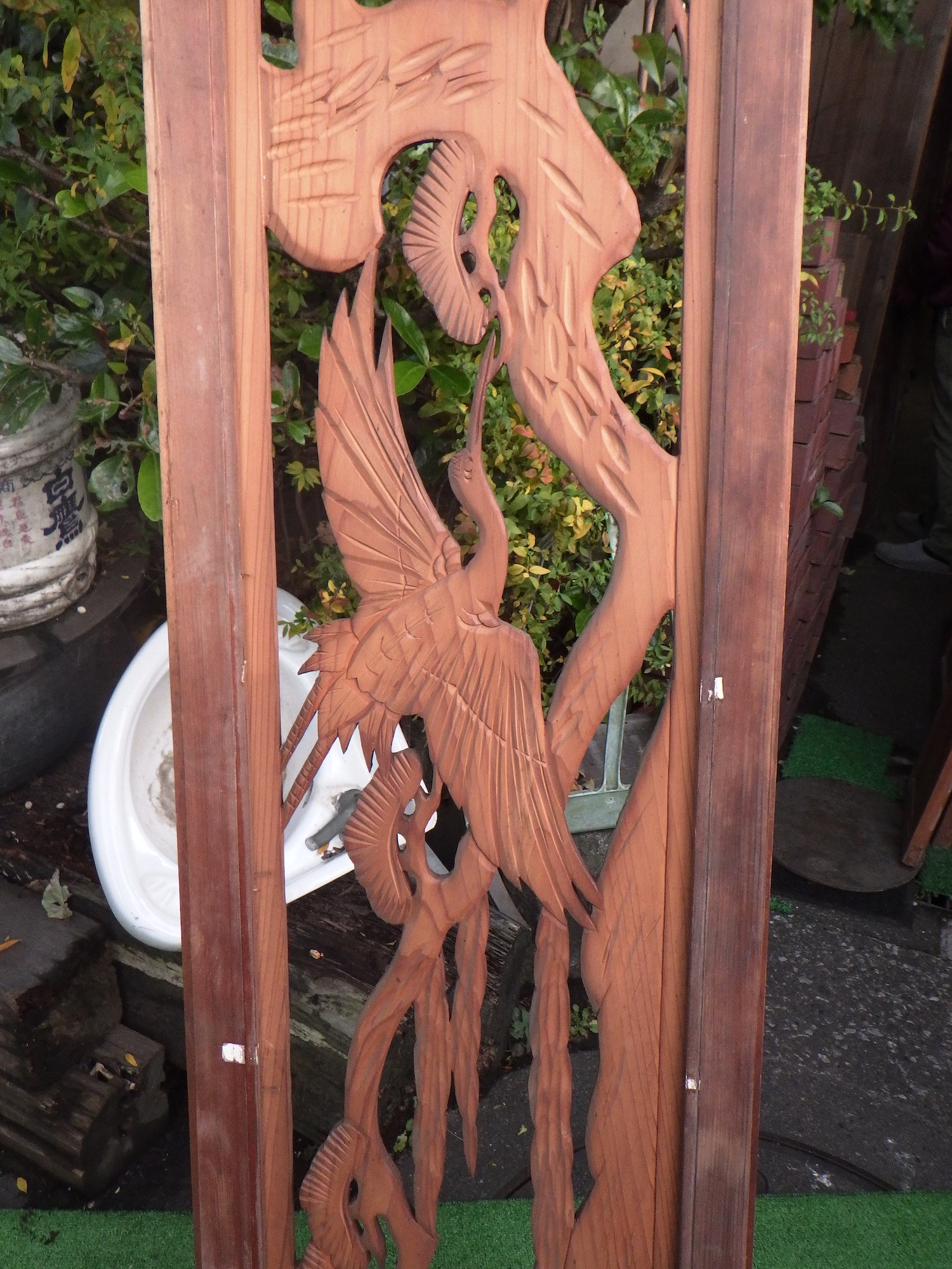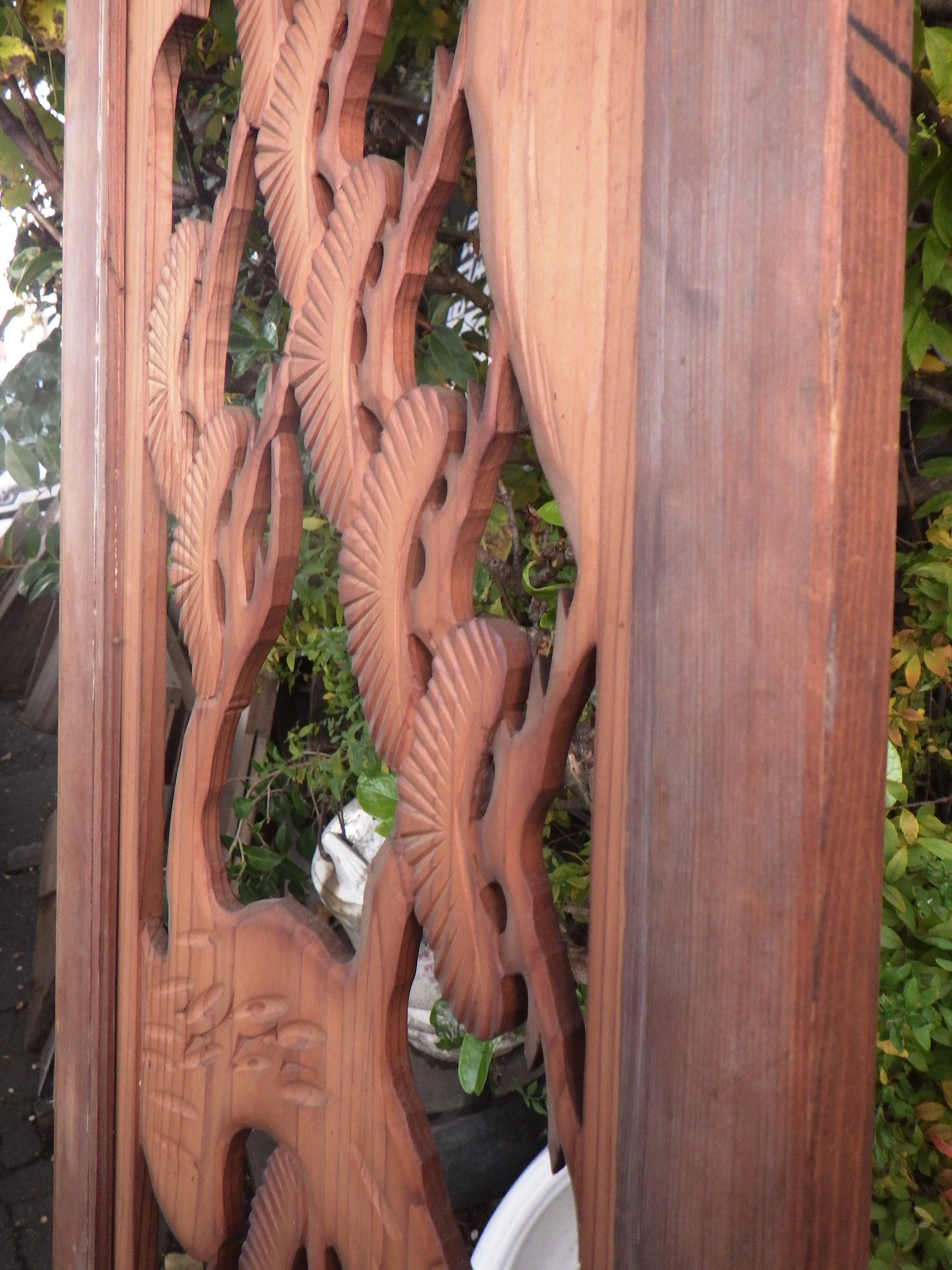 鶴と松の彫刻が彫られています。松の枝のリズムが特徴的です。
