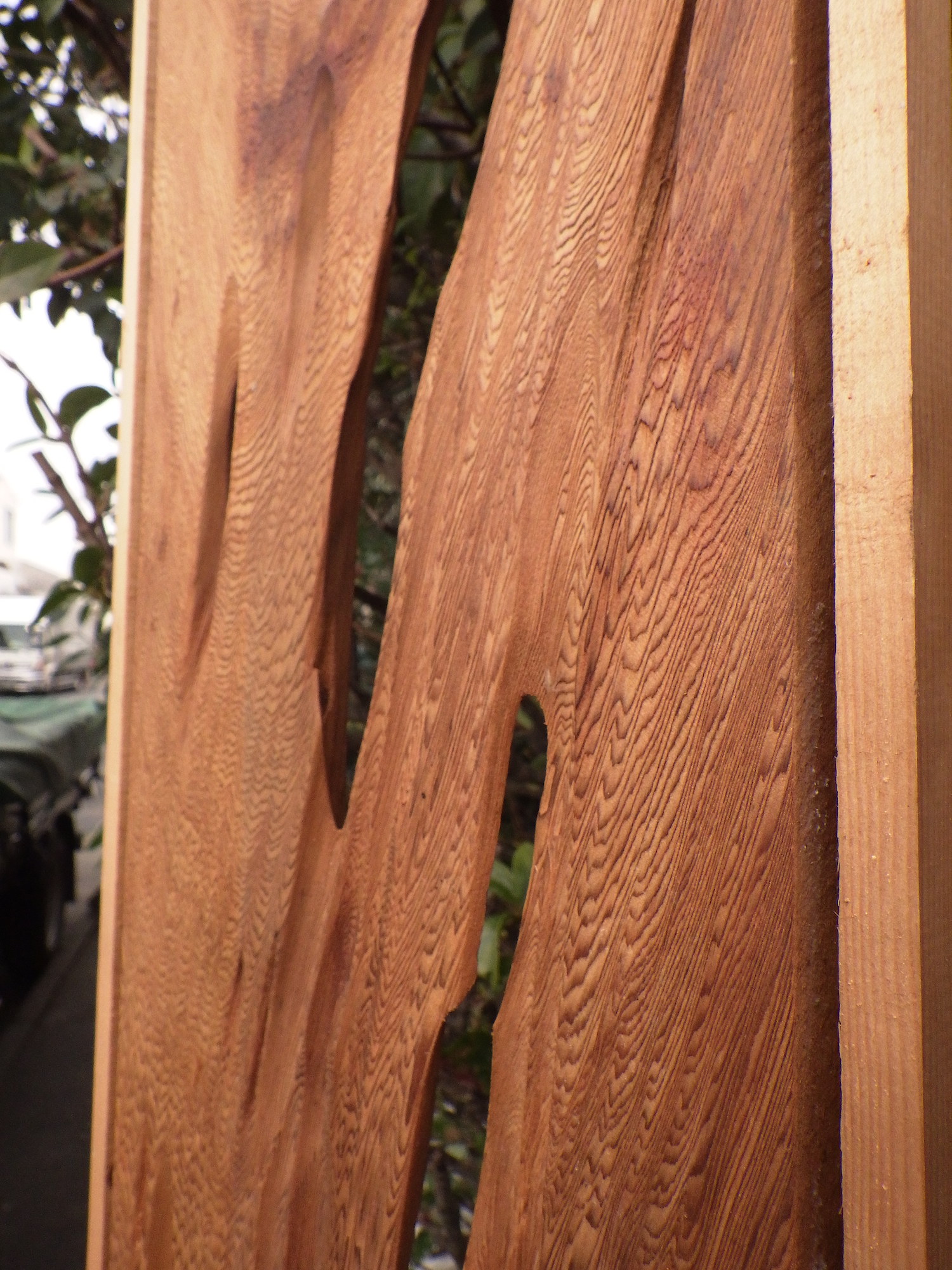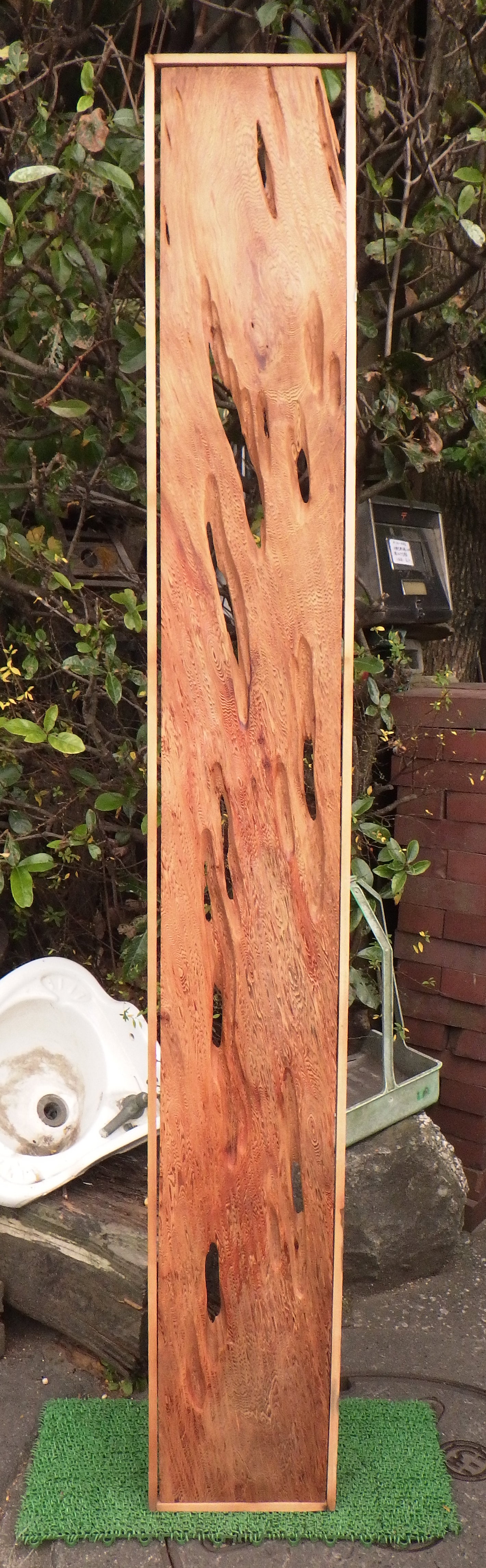 小田原の民家で使われていたものです。持ち主の話では屋久杉ではないかということでした。木目の入りかたに思わず見入ってしまう一品です。