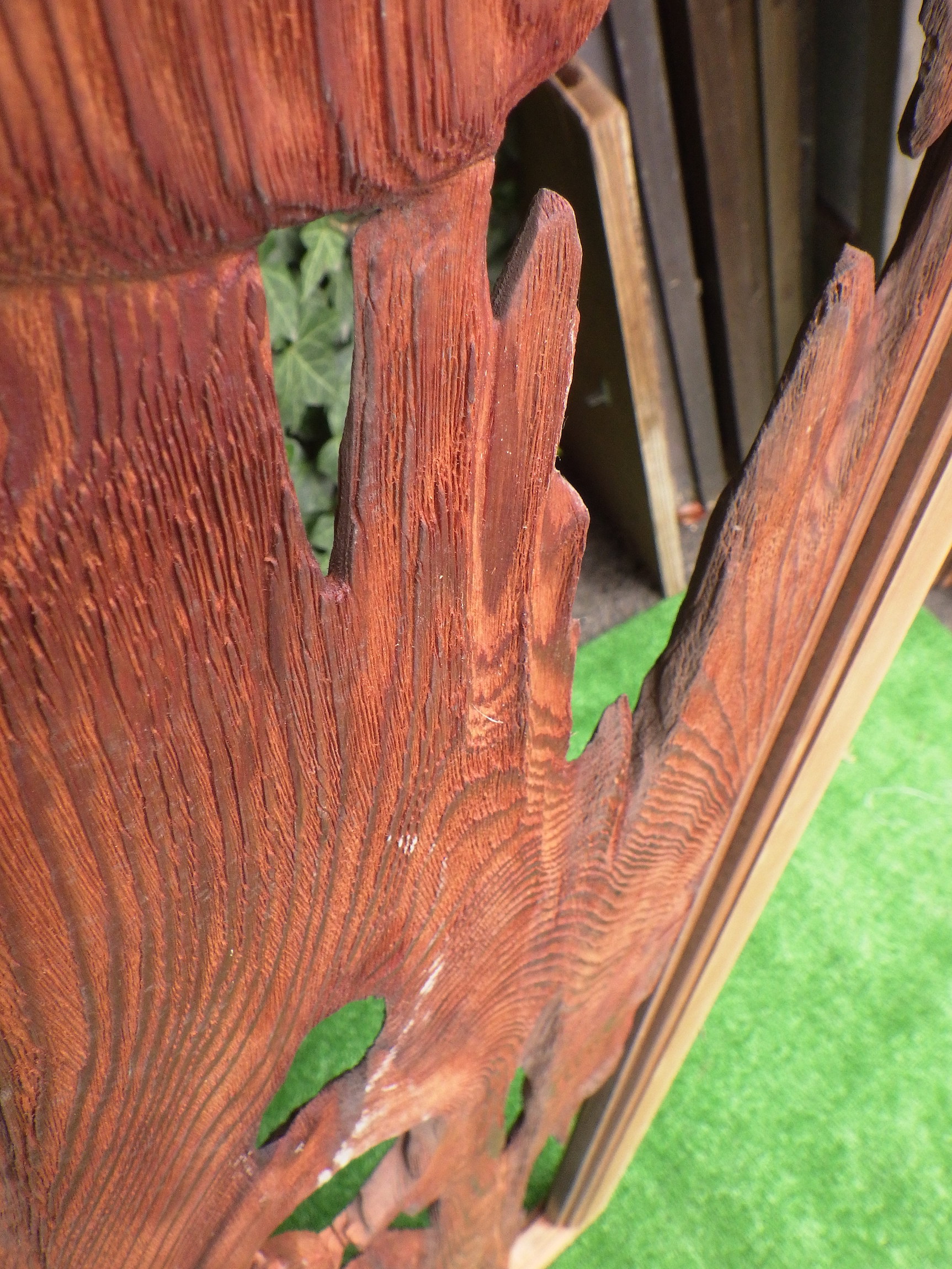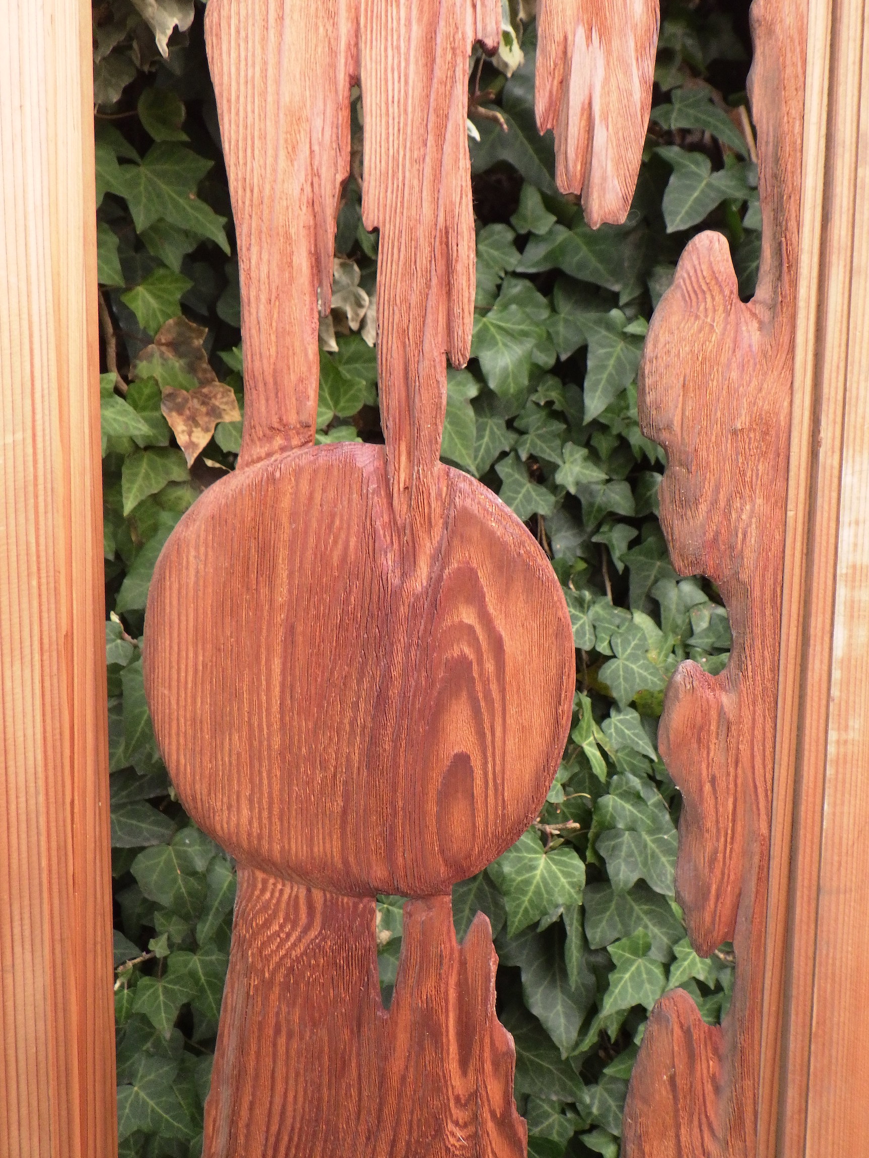 月夜のような日の丸のような曖昧さから想像が広がる不思議な板欄間です。自然が形成した木目やおうとつに迫力があります。多摩の民家で使われていたものです。