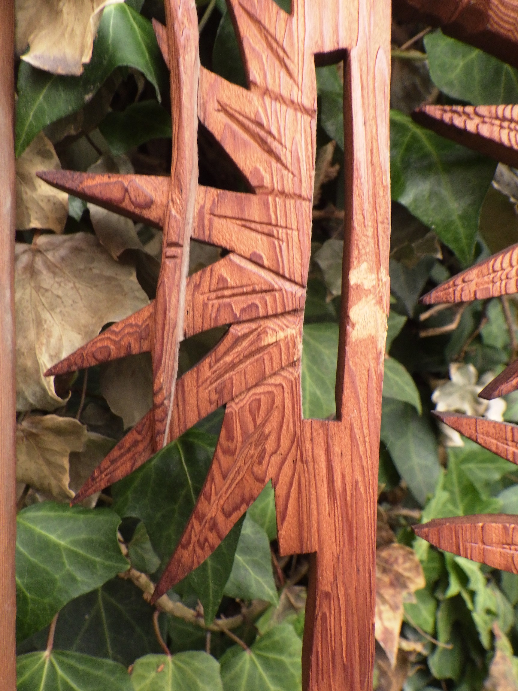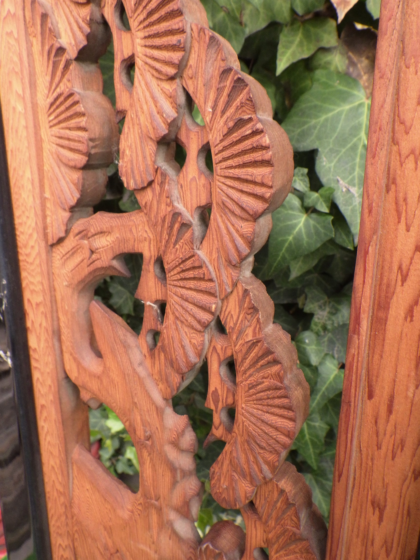 竹と松の彫刻欄間です。立体感と木目の面白さが魅力です。