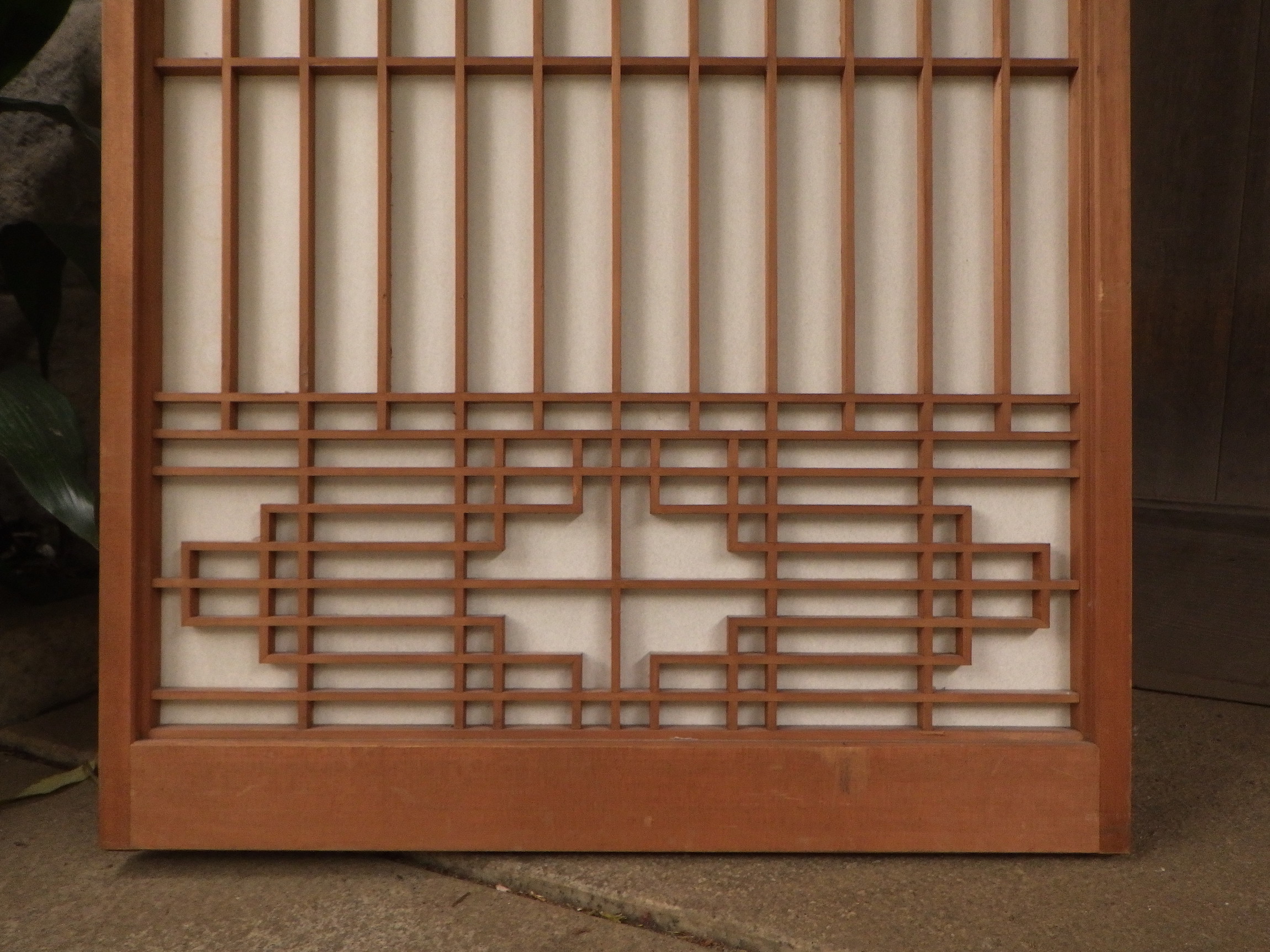 ほどよく組子の模様が入っています。東京の世田谷区の民家で使われていたものです。在庫のうち2枚は幅が670mmです。