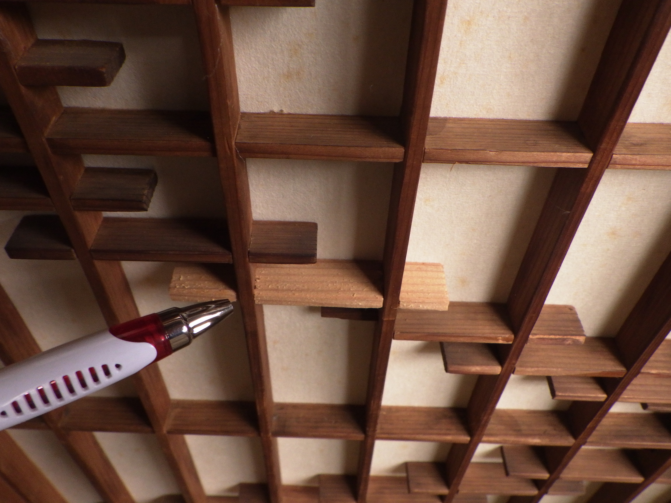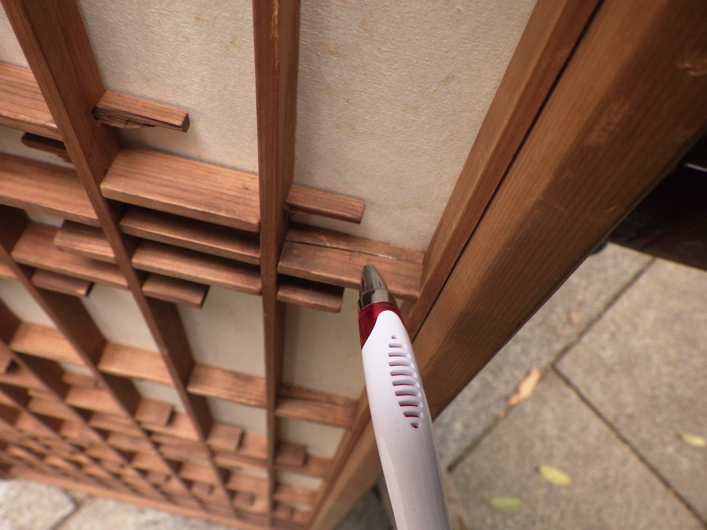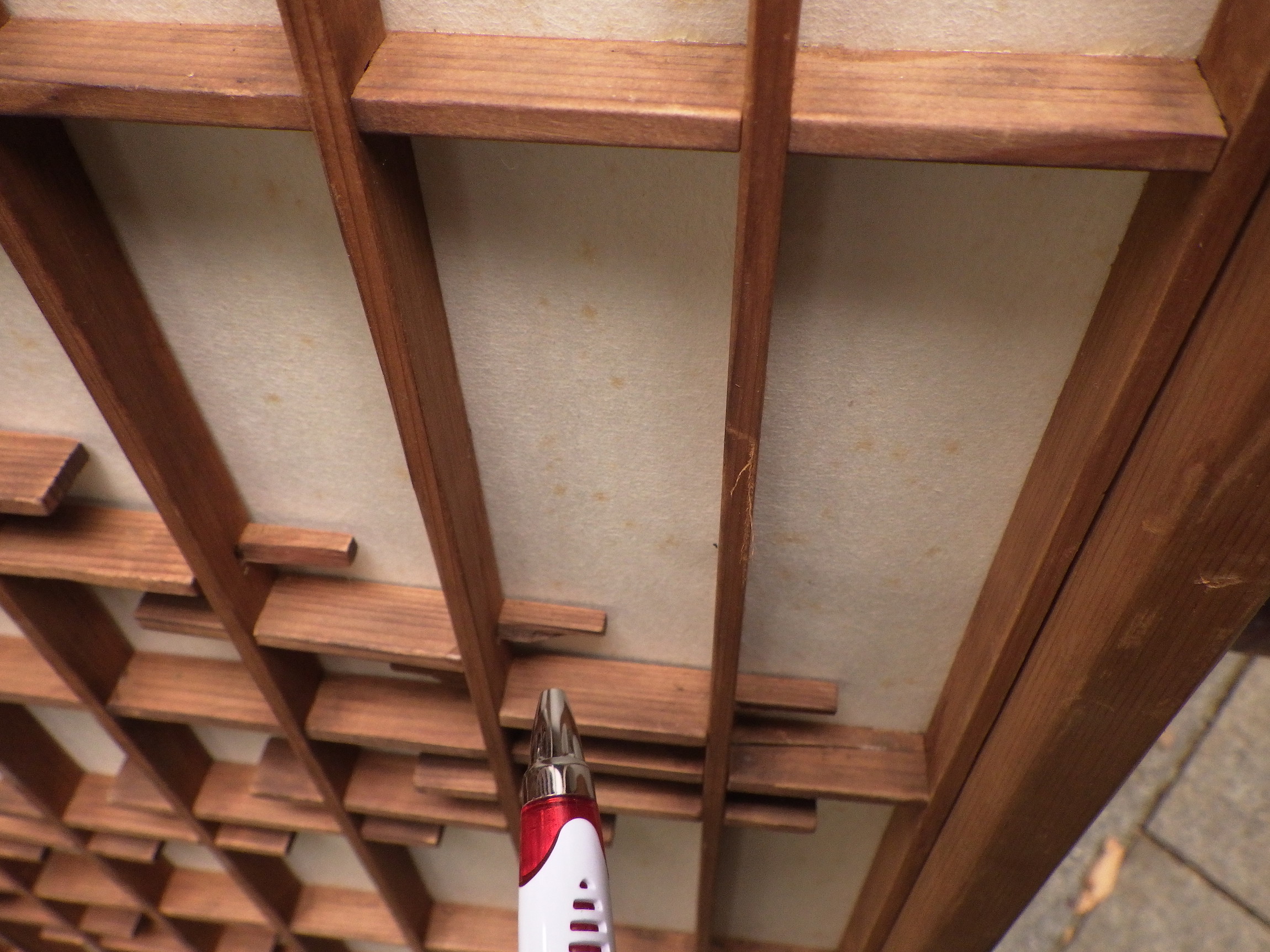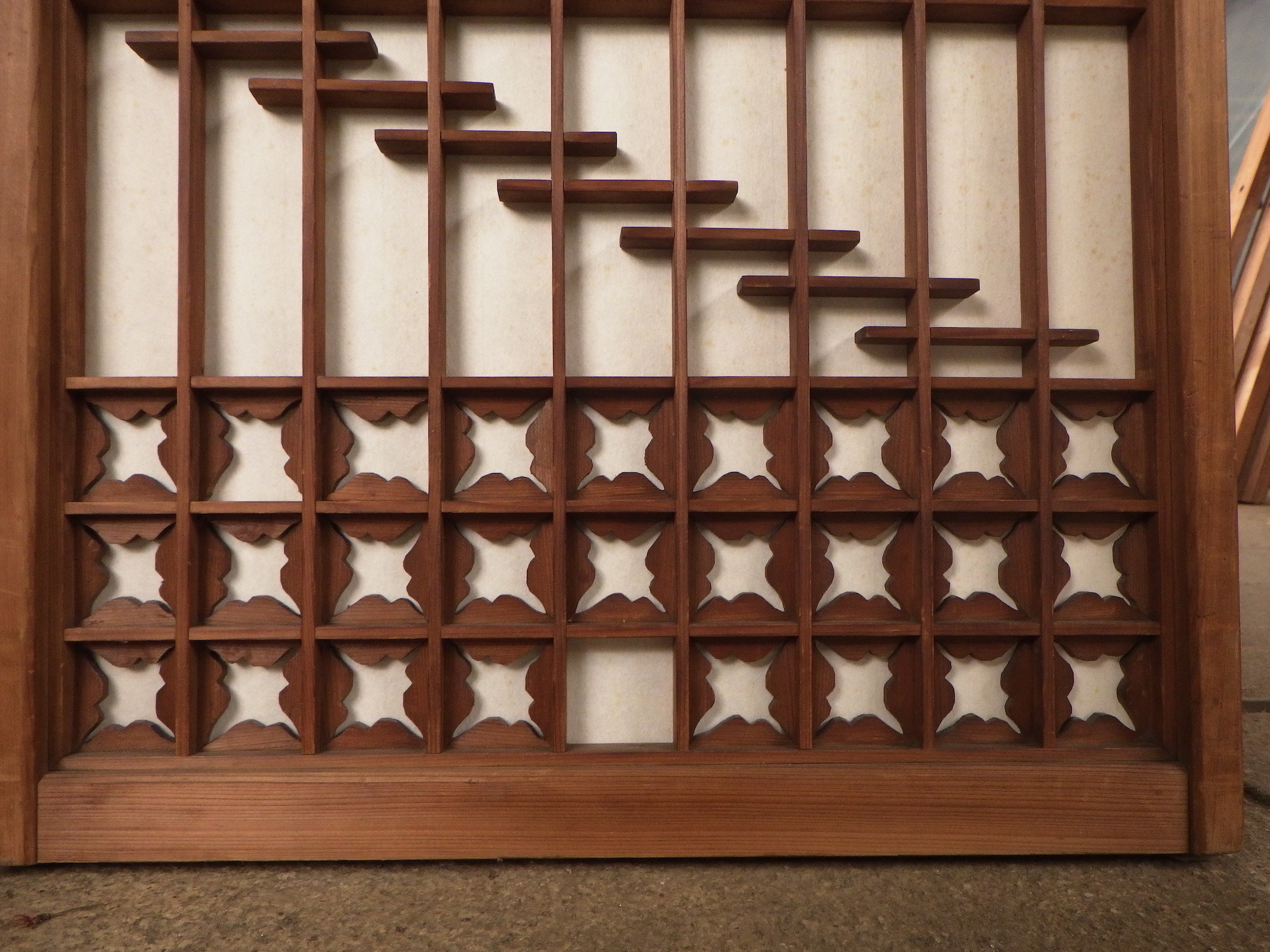 わけあり品。組子に欠けているところがあるため。東京の世田谷区の民家で使われていたものです。下の方の組子が手裏剣みたいな模様になっています。