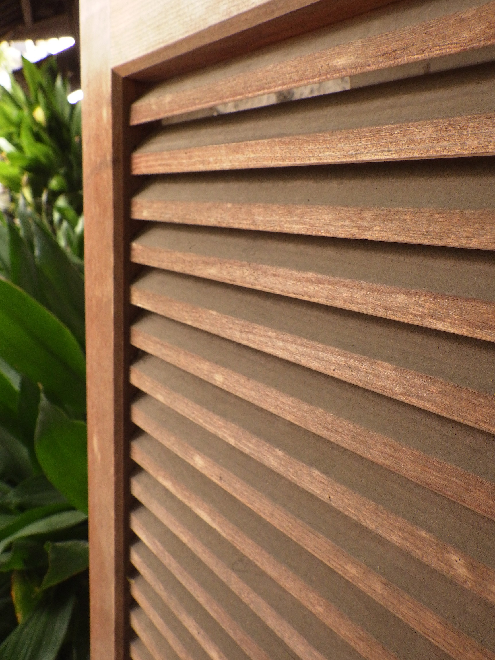 東京の世田谷区の民家で使われていたものです。ルーバー型になっている為、風通しをよくできます。現地では片面に障子紙が貼られていましたが、剥がしても向こう側が透けて見えるということはなさそうです。