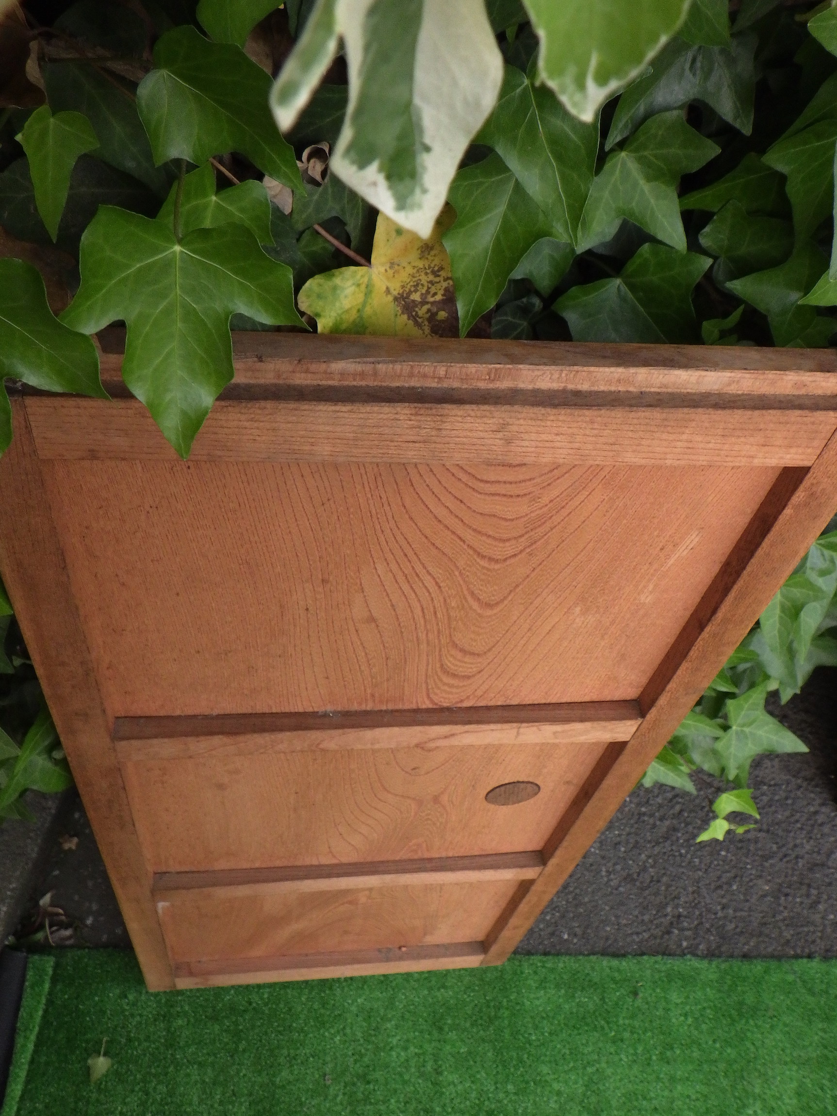 ケヤキの棚の戸です。取っ手は目立ちにくいデザインです。リメイクの材料としてもおすすめです。