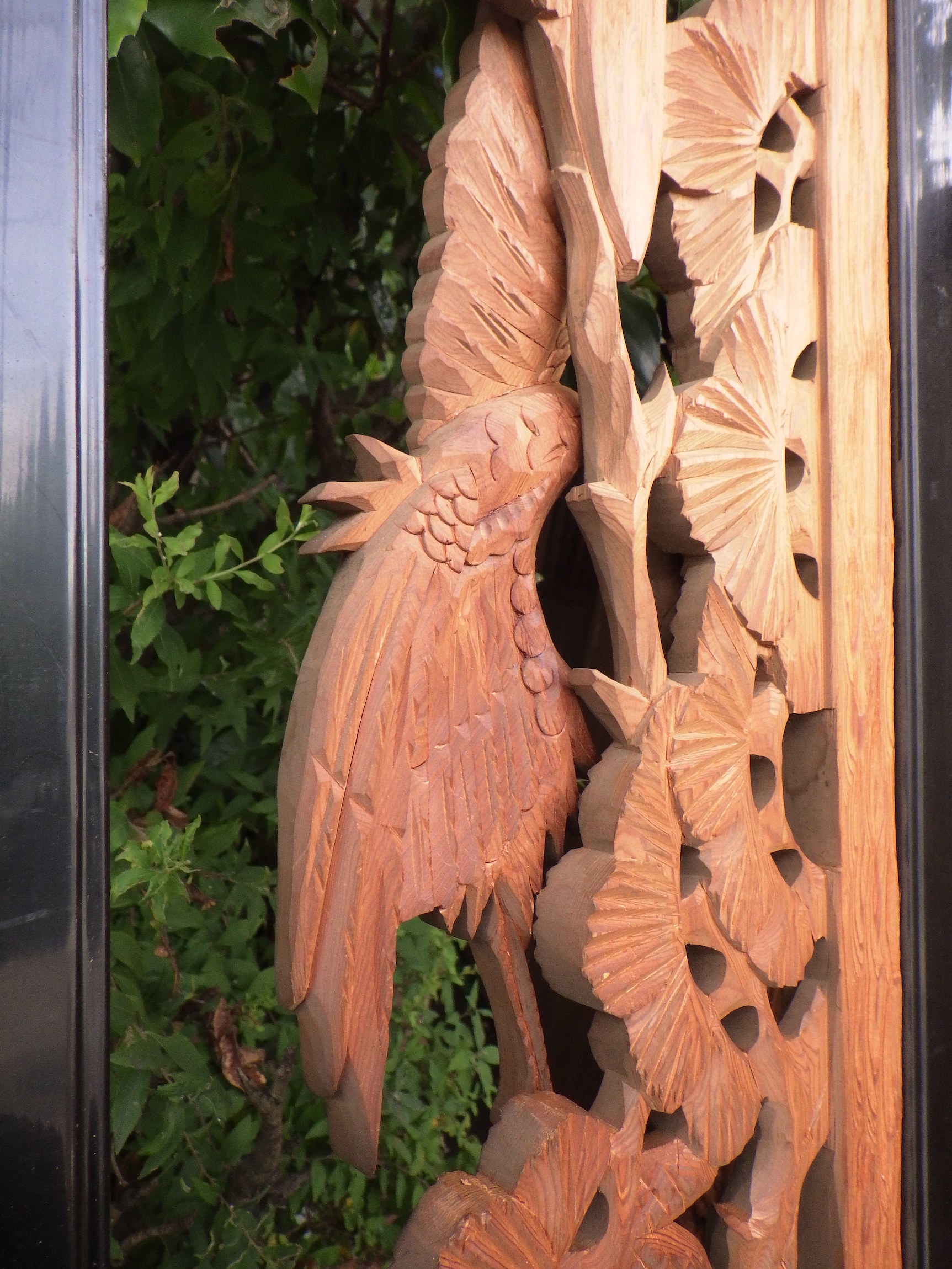 松竹と鶴の縁起の良い絵柄です。鶴は貼り付けられているようです。厚みは25mmですが、鶴の厚みを除いた厚さを計測しています。