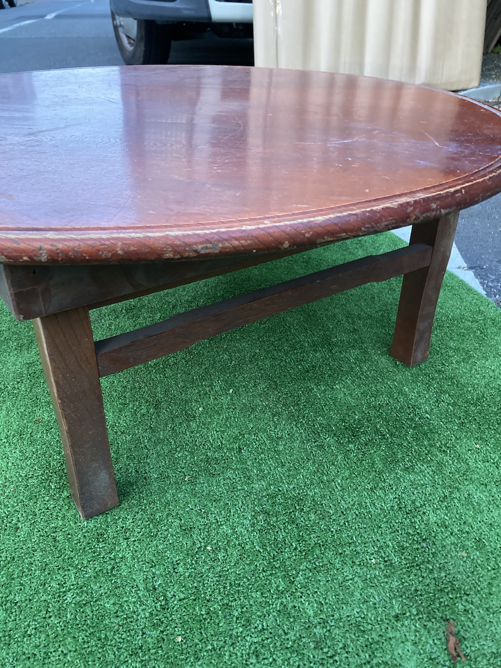 円形のちゃぶ台です。足を折り畳めるので必要ない時はしまっておけます。