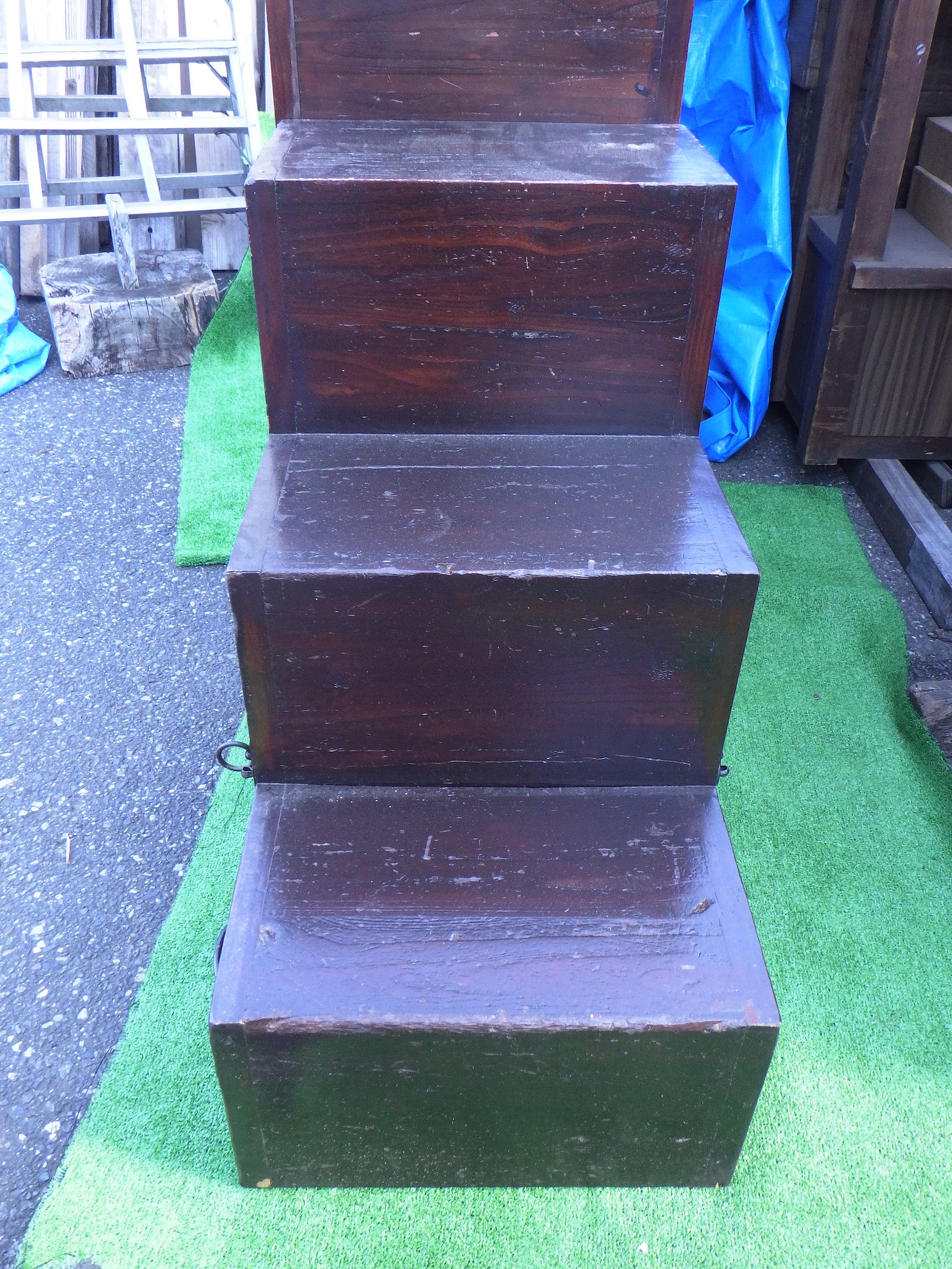 主役の家具になりそうなインパクトのある存在感です。すべすべとしたお掃除しやすそうな質感です。階段は一段ごとの大きさはH226mm×D237mmです。両側から扉や引き出しを開けることができるのも特徴です。