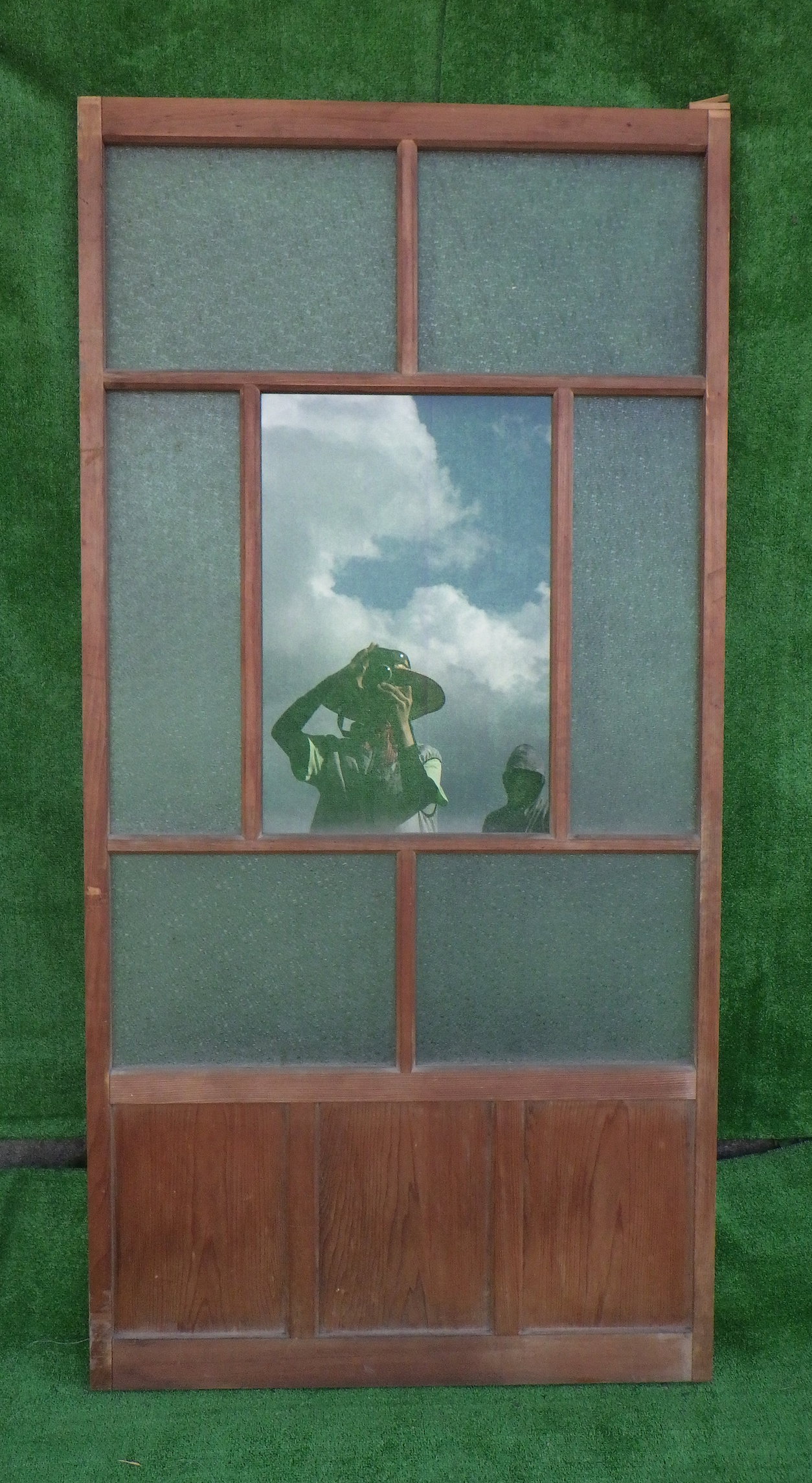 シンプルで扱いやすいデザインです。在庫のうち一枚は中央のガラスが4枚目に掲載した写真のようにすりガラスから透明のグラデーションのガラスになっています。