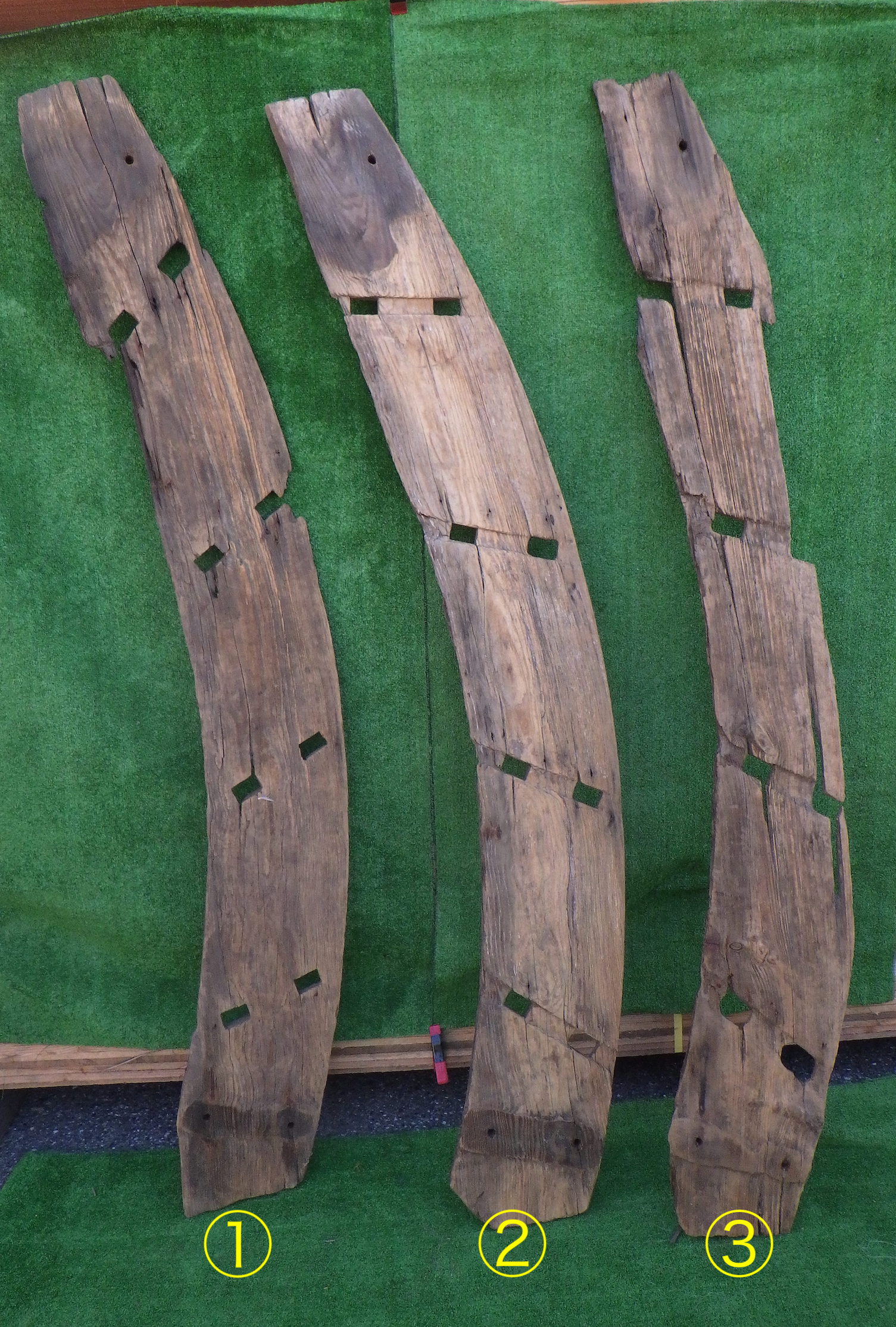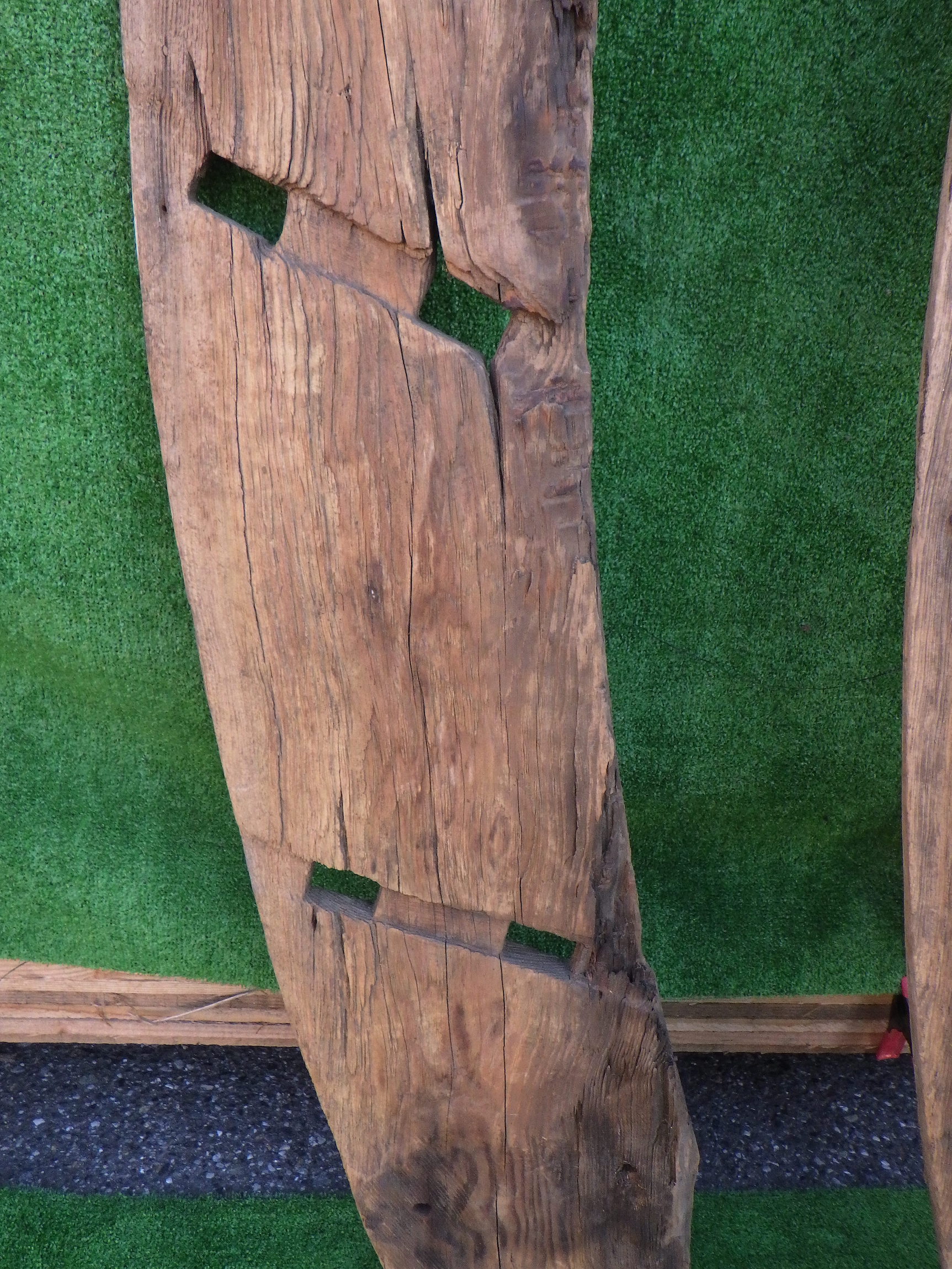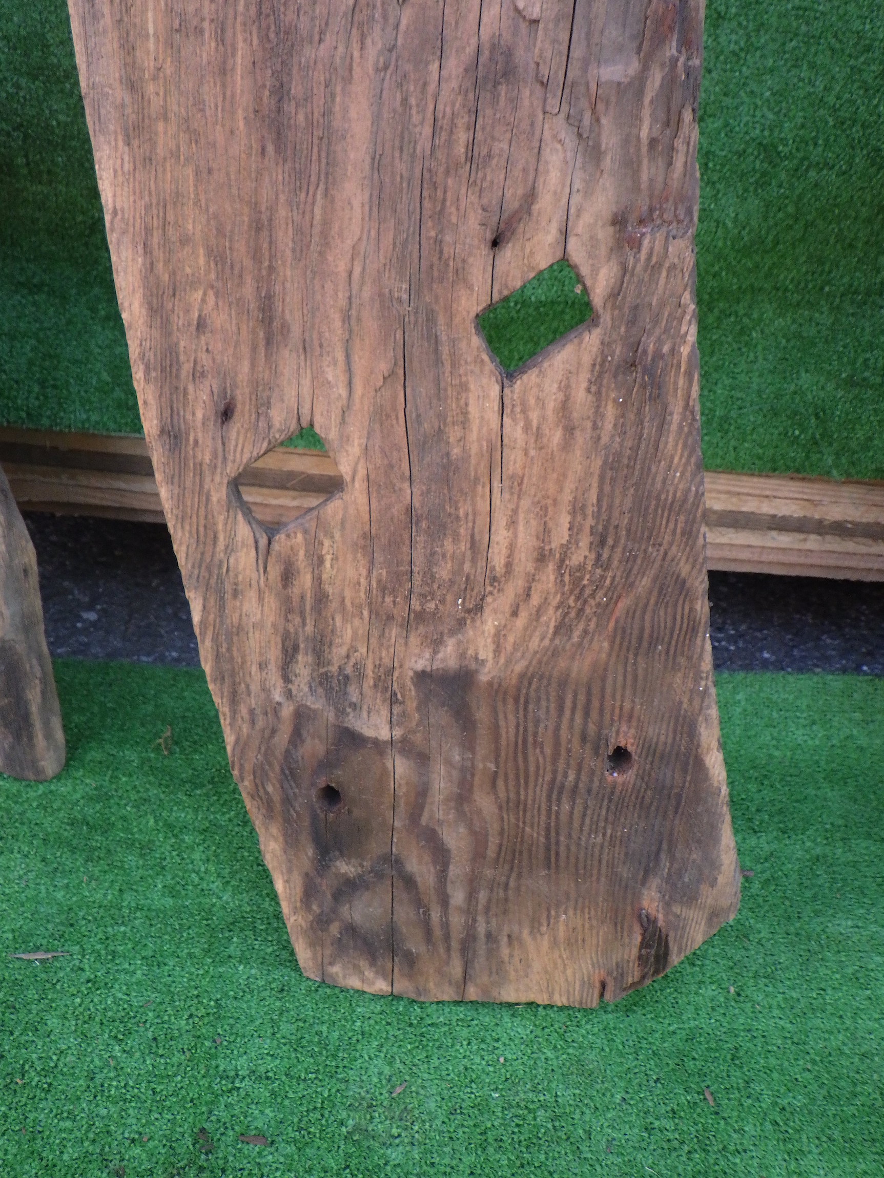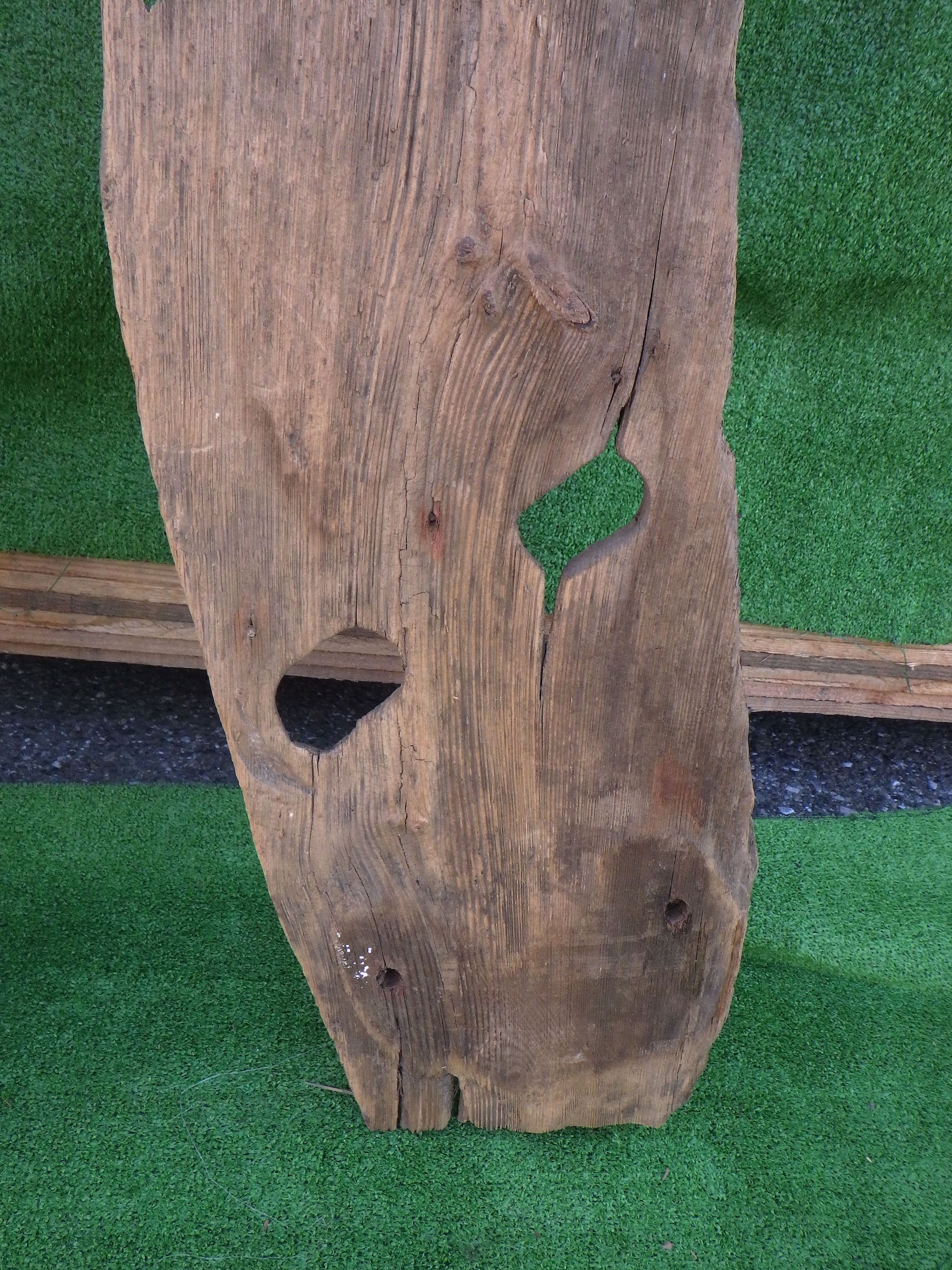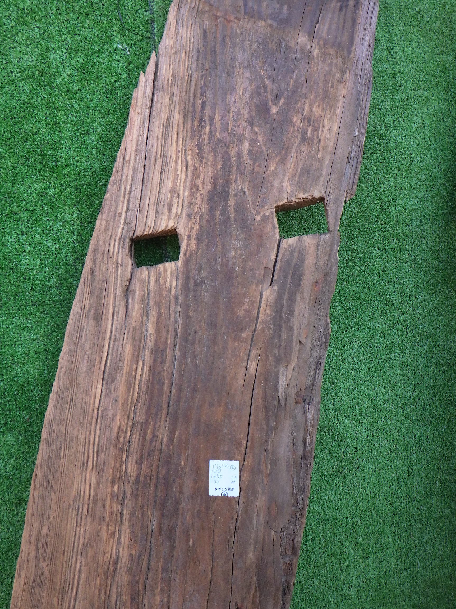 わけあり品。安く入荷できたため。 寸法はおよそになりますが、以下のようになります。 ①240×1880×30 ②210×1855×30 ③250×1875×30 個性的な一点ものの板です。ユニークな形を生かして棚板などの使用にもおすすめです。