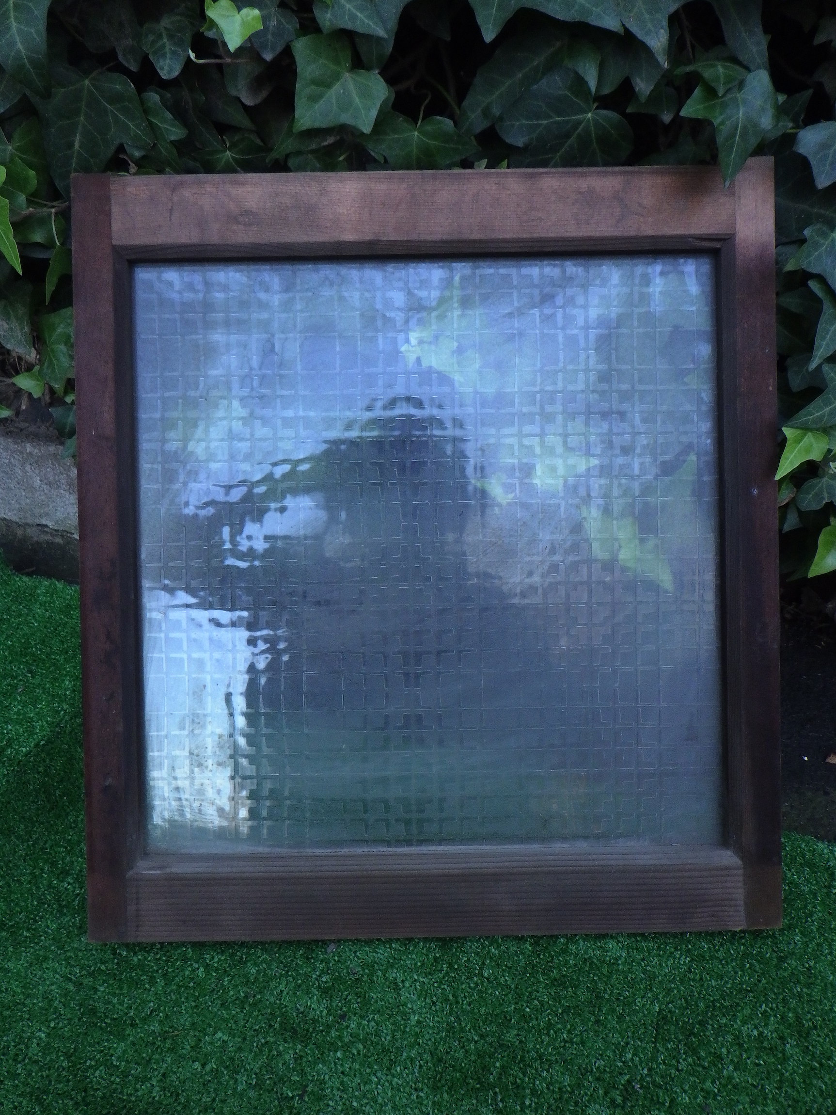 レトロな模様が美しいガラス窓です。2枚1組でご購入いただくと5,000(税抜)円です。