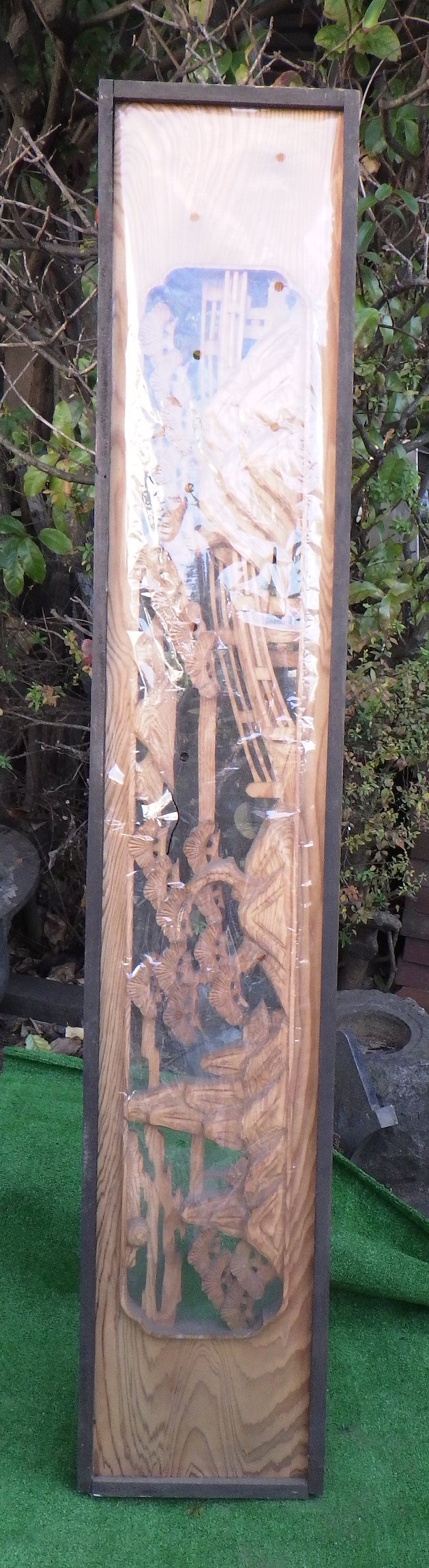 近江八景がモチーフだと思われます。迫力のある立体的な彫刻です。