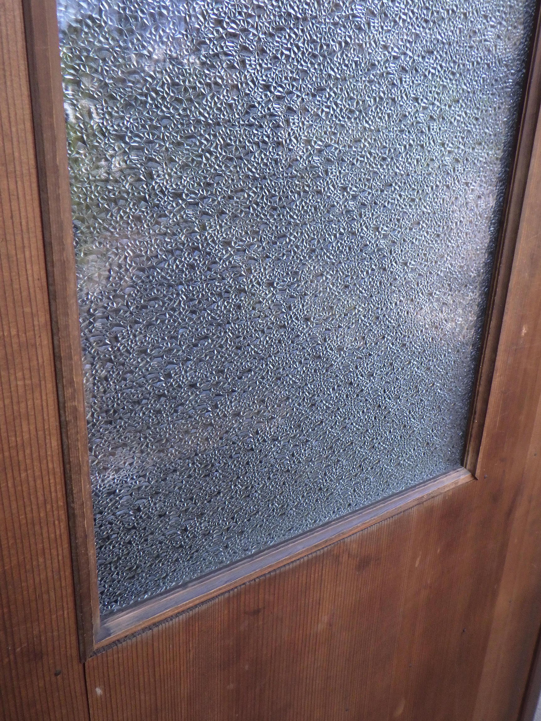 ダイヤガラスの窓がついた板戸です。大田区の民家の洗面所で使われていたものです。窓があるので、中に人がいるかどうかがわかるのが良いですね。