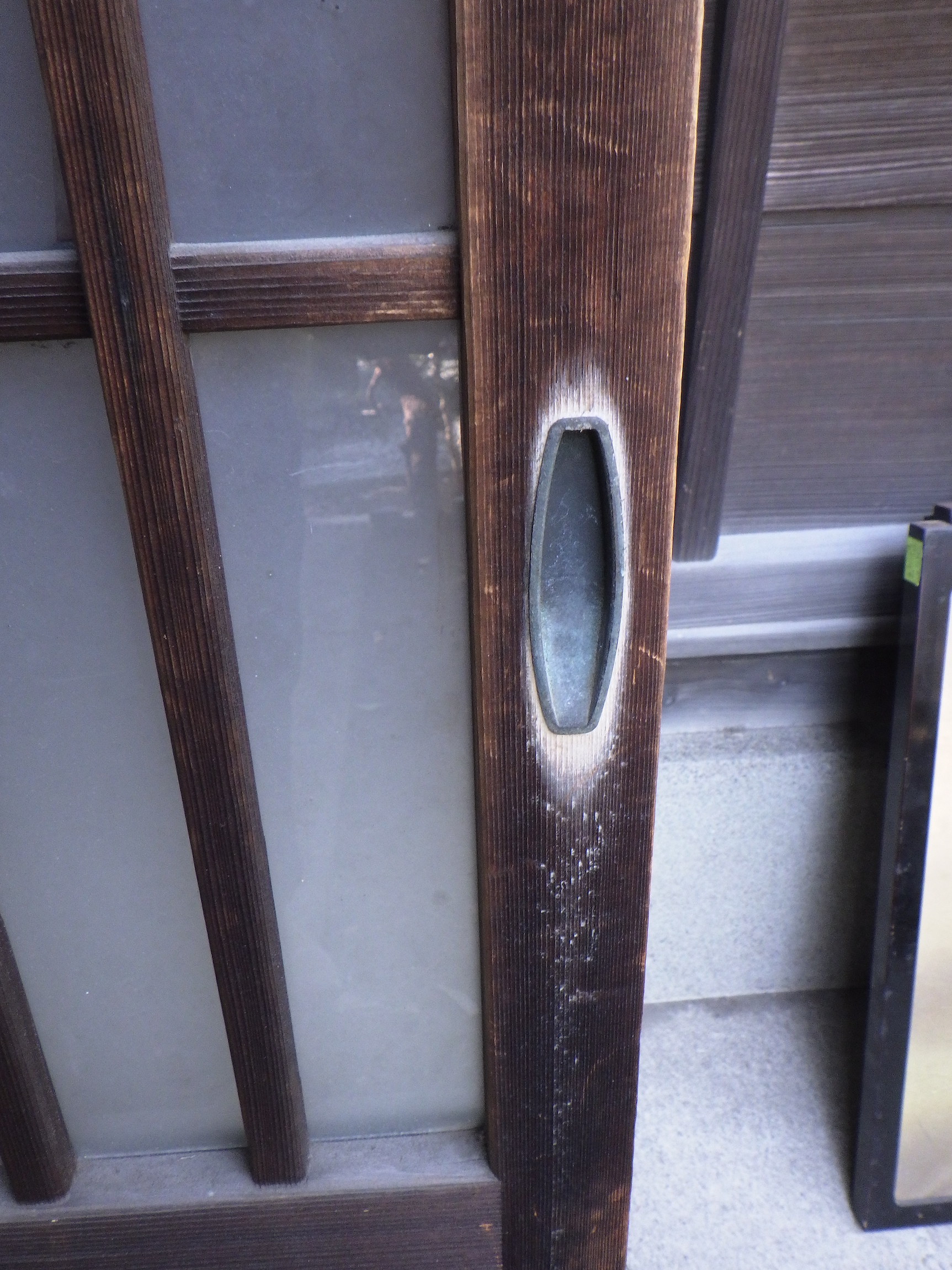 大田区の民家で玄関戸として使われていたものです。ガラスは曇りガラスが使われています。