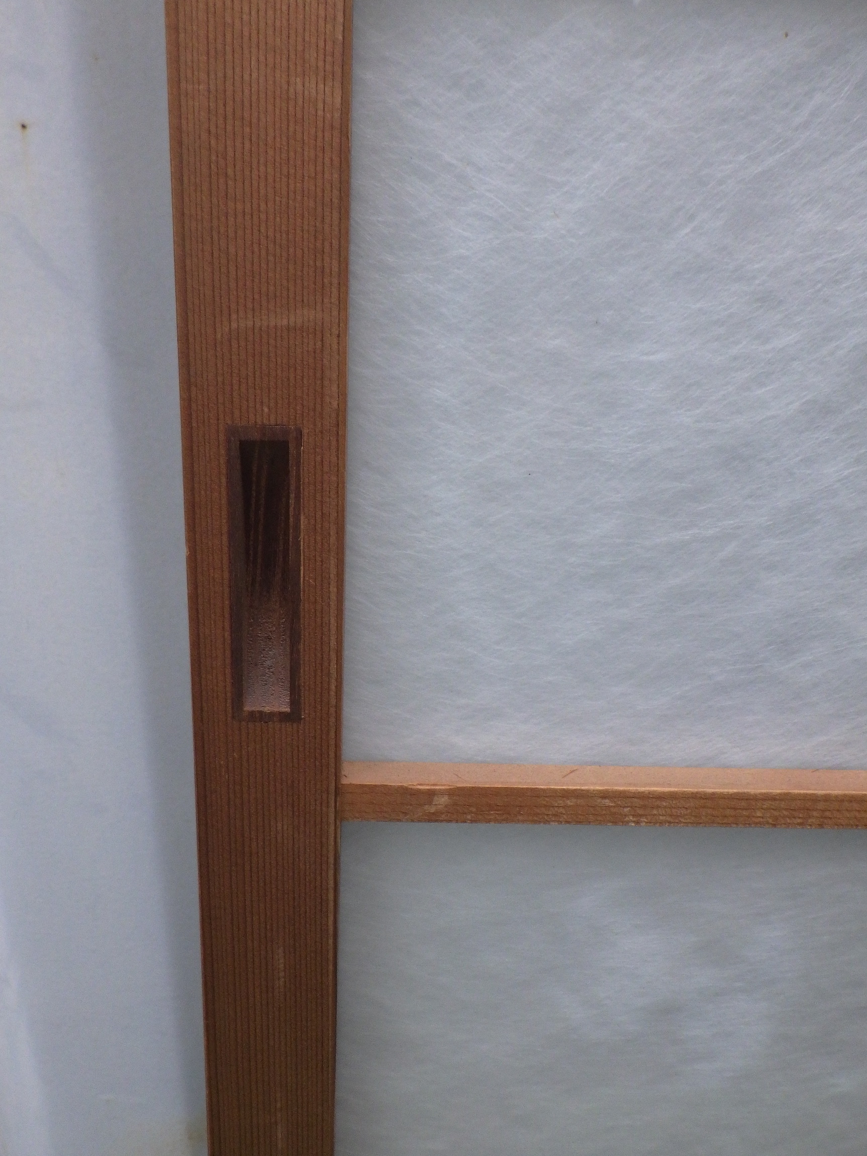 一見、障子戸のように見えますが、ガラスが使われています。裏面には格子がありません。ガラス会社からお引き取りした品物になります。